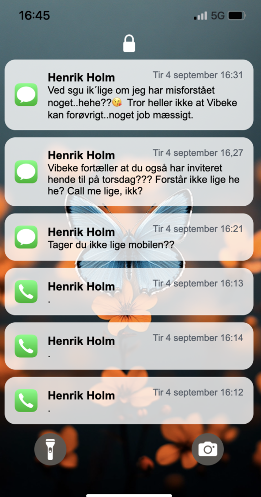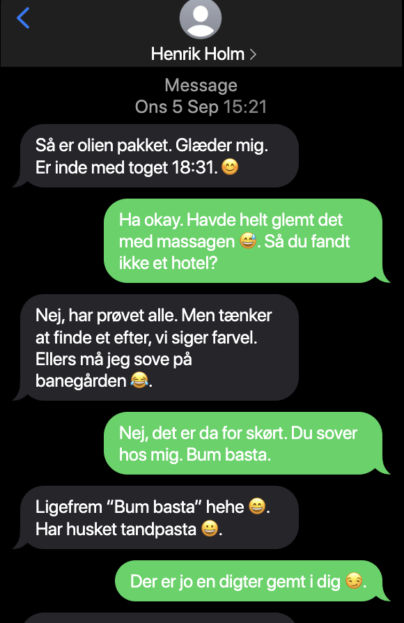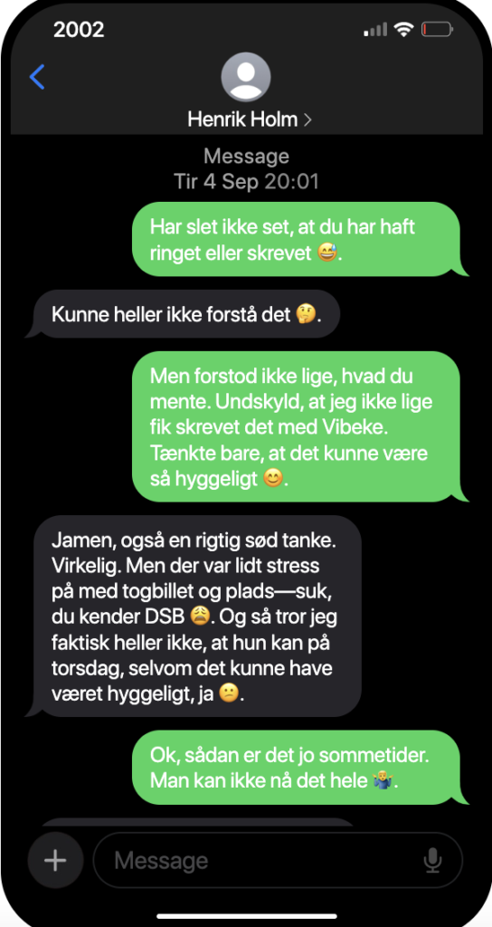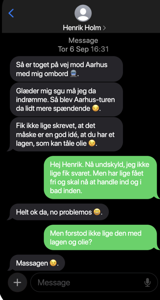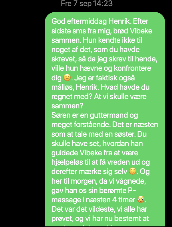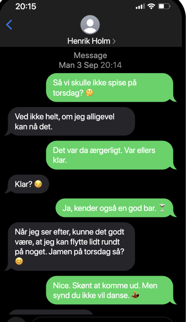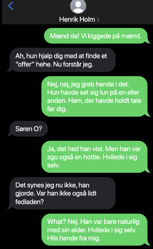 Sommerferien har været hård, for det hele handlede om børnene og hans efterhånden kedelige kone, som ikke gider at trimme sig som de andre kvinder, han ser i træningscentret, hvor han selv får sig tonet og trimmet når han kaster rundt med dæk. Men hun beklager sig konstant over manglende nærvær og bla bla bla, synes han.