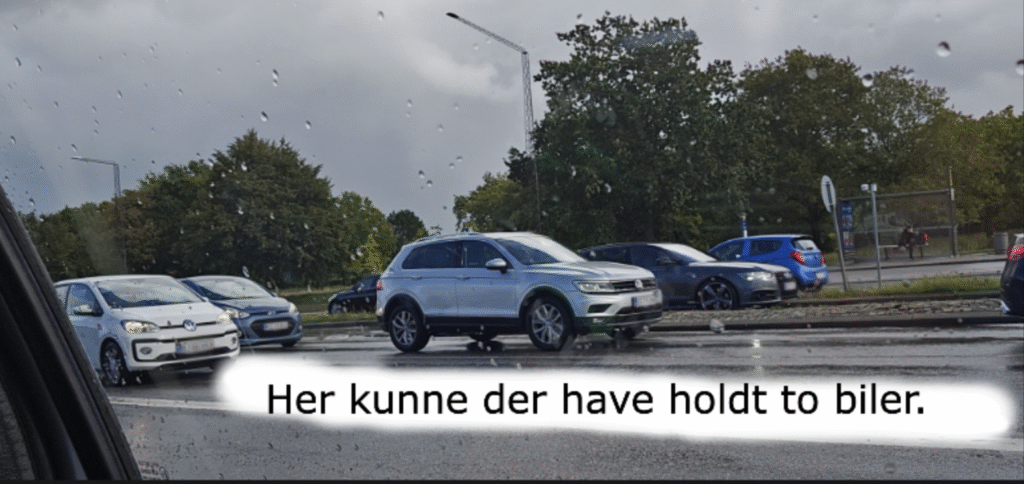 Kvinden var tilsyneladende totalt ligeglad med de øvrige bilister, da hun valgte at holde med omkring 15 meters afstand til bilen foran, netop som hun skulle dreje til venstre ad Søren Frichs Vej efter Ringgadebroen.